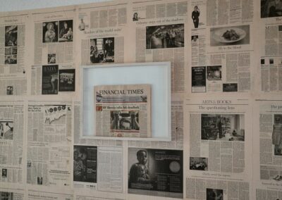 Usunięcie zdjęć z gazet w tej instalacji stało się radykalnym gestem demontażu medialnego spektaklu: obrazy, które miały reprezentować rzeczywistość, zostają w nim dosłownie wyjęte z kontekstu, a ich miejsce zajmuje bezpośrednia, „niefiltrowana” wizualność świata wewnętrznego i zewnętrznego.