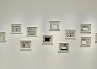W najnowszej instalacji On Both Sides (2025) koncentruję się na zjawisku społecznej polaryzacji, którą wzmacniają medialne obrazy i narracje. Ten pogłębiający podział i utrwalający uprzedzenia proces widoczny jest nie tylko w Polsce czy Niemczech. W instalacji tej wykorzystałem gazety codzienne z obu krajów, by zwrócić uwagę na rolę stereotypów i uproszczonych narracji w konstruowaniu obrazu rzeczywistości. Przez świadome usunięcie obrazów prasowych chcę ujawnić ich rzeczywistą funkcję – nie tylko informacyjną, ale także ideologiczną.
