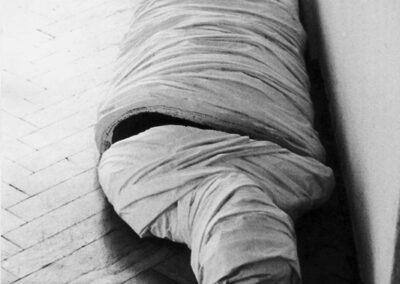 W innej z moich wczesnych rzeźb, zatytułowanej Limited Area (1981), wykorzystałem gipsowy odlew przypominający mumię. Nadałem jej rozmiary zbliżone do mojego ciała, a przez jej przecięcie umożliwiłem wgląd do jej pustego wnętrza. Ta powstała ponad czterdzieści lat temu praca była wyrazem towarzyszącej mi wówczas refleksji nad śmiertelnością i przemijaniem. Uświadamiałem sobie, że obietnice życia wiecznego – obecne w wielu religijnych narracjach – pełnią funkcję psychologicznego antidotum na pierwotny lęk przed nicością, przed pustką.
