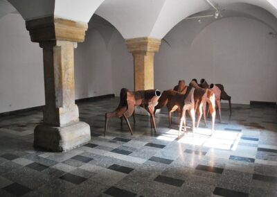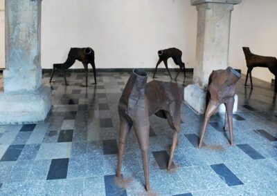 Dobrze pamiętam moje pierwsze spotkanie z jej pracami w 2011 roku w nieistniejącej już galerii Awangarda BWA Wrocław przy ulicy Wita Stwosza 32 we Wrocławiu. Wtedy jako świeżo upieczona absolwentka rzeźby wrocławskiej Akademii Sztuk Pięknych Anna Bujak pokazała na wystawie dyplomów grupę obiektów zatytułowanych Stado, przedstawiających bezgłowe sarny. Ich prosta, syntetyczna, nieco „przemysłowa” forma wydała mi się głęboko przejmująca. Zdekapitowane osobniki stały w galerii nieme, wyciągnięte z kontekstu niczym wyrzut sumienia, oskarżycielski wobec panoszącego się w świecie natury człowieka, który dla zaspokojenia własnego ego gotów jest pozyskać trofeum od niewinnych, niszcząc i zabijając. Autorka zdawała się mówić, że tu, niestety, nikt nie pozostaje bez winy, wszyscy, zanurzeni we współczesnej cywilizacji, jesteśmy częścią systemu uprzedmiotawiającego inne byty nie-ludzkie, gatunkiem krótkowzrocznie pyszniącym się uprzywilejowaną pozycją na szczycie łańcucha pokarmowego, ostatecznym drapieżnikiem, podcinającym gałąź, na której sam siedzi. Prace trafiły po latach do publicznej kolekcji Dolnośląskiego Towarzystwa Zachęty Sztuk Pięknych jako Afekt (2014) i przy tej okazji nasze drogi znów się przecięły. To nasze ponowne spotkanie zaowocowało kilkoma wystawami i materializacją kilku wspaniałych prac.