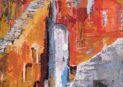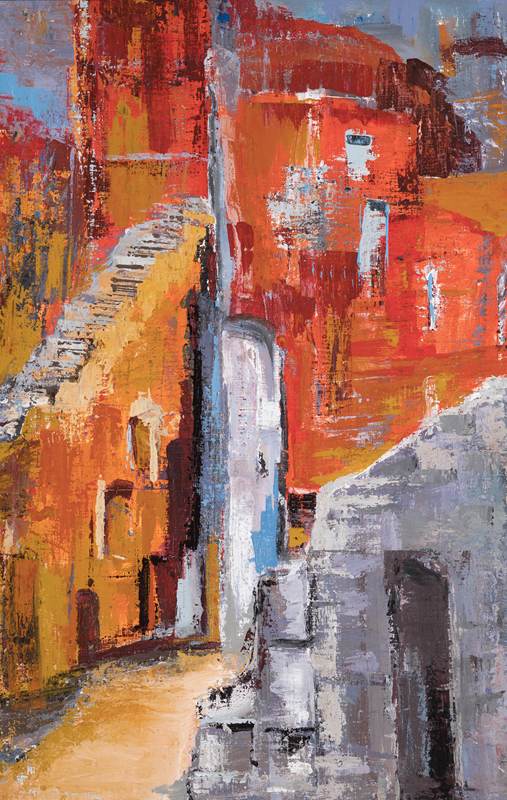 Wystawa prac Gerdy Stry została świetnie zaaranżowana w salach Pałacu Królewskiego; prowadząc widza przez kolejne dominujące motywy jej obrazów eksponowanych w tych salach. Pierwszy motyw – w wyborze prac powstałych głównie w latach pięćdziesiątych XX wieku – to przedstawienia architektury miasteczek i ulic z odpowiednim ich oświetleniem. Artystka poddaje się tu ferii południowego, naturalnego oświetlenia nadmorskich miejscowości, gdzie światło buduje formę architektury, samo stając się „materią” koloru. Zderzenie brył budowli (także schodów) ze wspomagającymi je smugami światła stwarza tu odpowiedni klimat i uwypukla piękno wakacyjnego krajobrazu. Prace te – o dominacji „ciepłego” koloru – już w latach sześćdziesiątych zostały skontrastowane z „zimnymi” błękitami morskich fal, przybrzeżnych marin, wreszcie zderzone z gorącą czerwienią wulkanicznych erupcji magmowych – te obrazy, o „triumfującej” czerwieni, są swoistym znakiem rozpoznawczym jej twórczości. Wyraźna jest tutaj ekspresja jej prac – struktury grubo kładzionych farb. Z tego okresu pochodzą także odważne „płonące” drzewa, dostrzeżone na południu Francji czy Włoch (na przykład Camargo, Murnau).