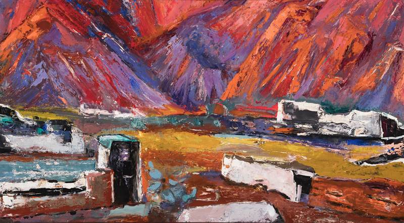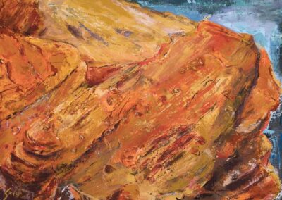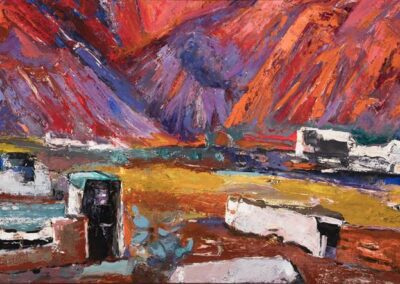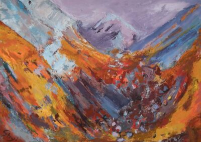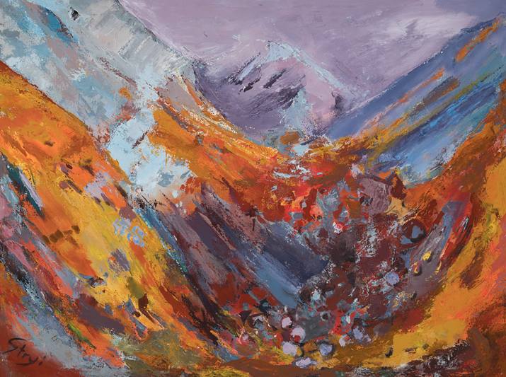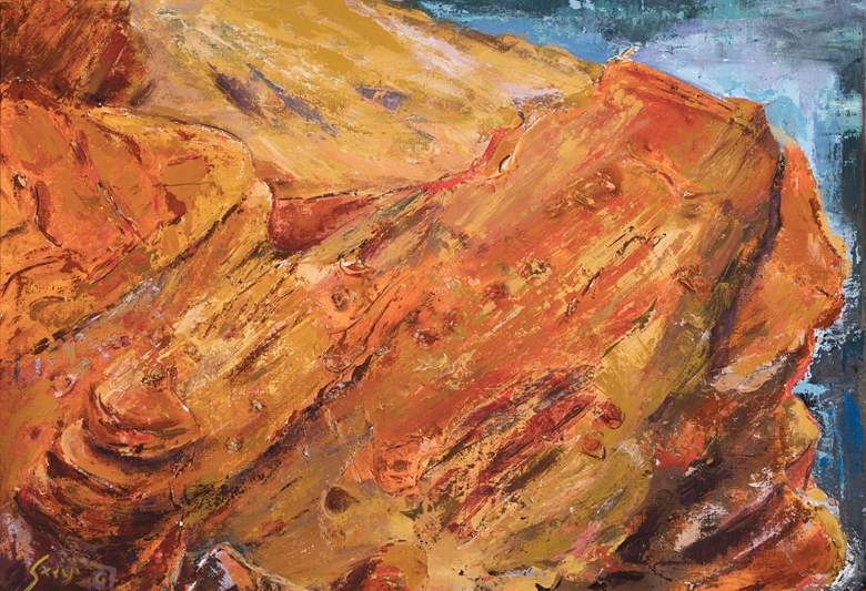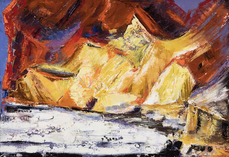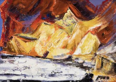 Jednakże obrazy z końca lat sześćdziesiątych i początku lat siedemdziesiątych otwierają sztukę Gerdy Stryi w pewnym sensie na „malarstwo materii” (grube faktury, sedymentacje koloru), w którym właśnie czerwień staje się dominującym walorem, jest niejako „podmiotem” w kreowaniu form, w wywoływaniu wrażeń emocjonalnych, w tym napięcia (San Terenzo,1967; Feu mort, 1969; Mediterran, 1969; Brodelndes Wasser, 1970; Vulkanisches Gestein, 1971). Równie intrygująco prezentują się prace plenerowe – obrazy drzew w wichrowych ujęciach. To ekspresyjne, gwałtowne przedstawienia gniewu autorki. Tu przeplatają się pejzaże kolorystycznie „chłodne” z „gorącymi” – co świetnie oddają „tańczące drzewa” z 1983 roku. Na tych obrazach w zasadzie tańczy kolor – płomienny, gorący oddech artystki. W wyborze z lata osiemdziesiątych pokazano krajobrazy „chłodniejsze”: w zieleni i błękitach, choć i one przeplatają się z ekspresyjnymi ujęciami wiosny czy jesieni parku w Wiesbaden, gdzie artystka spędziła sporą część życia.