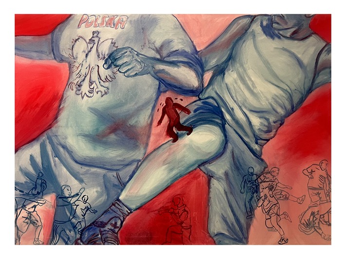 GRA W ZBIJAKA BEZ PIŁKI, OLEJ NA PŁOTNIE, 130 x 90 CM, 2025