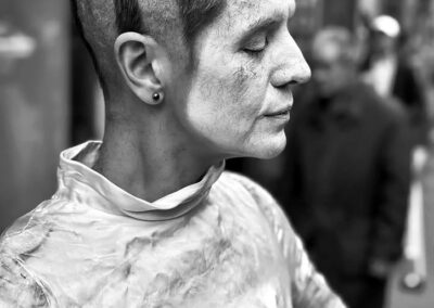 Podziwiałam ją wówczas za zorganizowanie, wewnętrzną dyscyplinę i oddanie sztuce. Obserwowałam jej aktywność artystyczną w różnych krajach Europy. W 2023 roku, mimo kontuzji kolana, nie zrezygnowała z występów w Belgii i na Sycylii. Jechała wtedy przez całą Europę, aby na południu Włoch zaprezentować swój spektakl. „Tak, ta podróż była długa, a ból prawdziwy. Ale ból jest zawsze częścią mojego procesu. Ja od niego nie uciekam. Próbuję go słuchać. Dyscyplina dla mnie to nie kontrola. Być gotowym oznacza pozostać otwartym, nawet gdy organizm stawia opór. Sztuka nie czeka na wygodę. Scena, ulica, autobus – wszystkie miejsca stają się częścią tego samego rytuału”. Josef Ka to typ wędrującej performerki. Rozpiera ją energia i chęć tworzenia. Performans stał się dla niej pasją. Marina Abramović mówiła, że potrzeba bycia artystką jest jak potrzeba oddychania. Po prostu musisz oddychać, by żyć, i musisz robić sztukę, by żyć. Zresztą widzę podobieństwa między tymi dwiema artystkami.