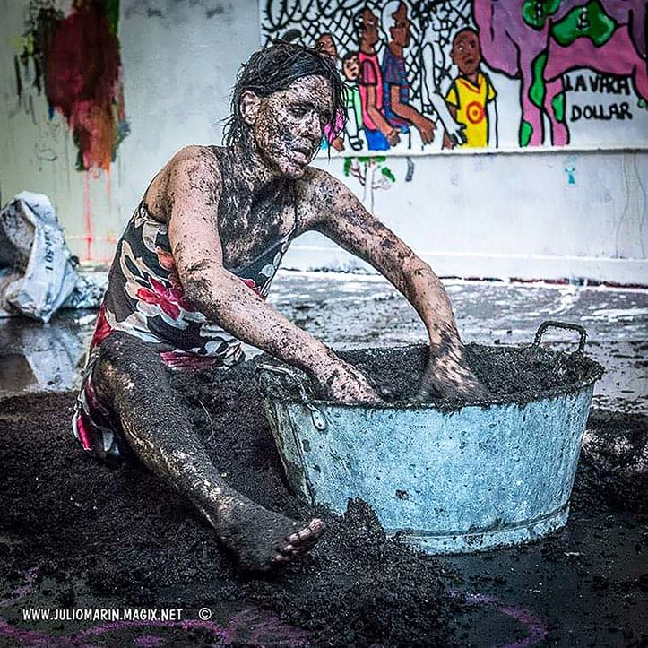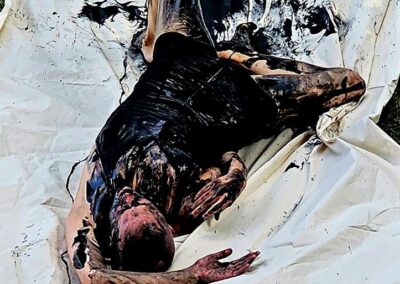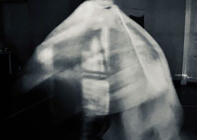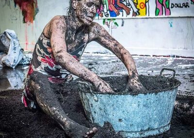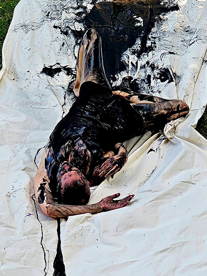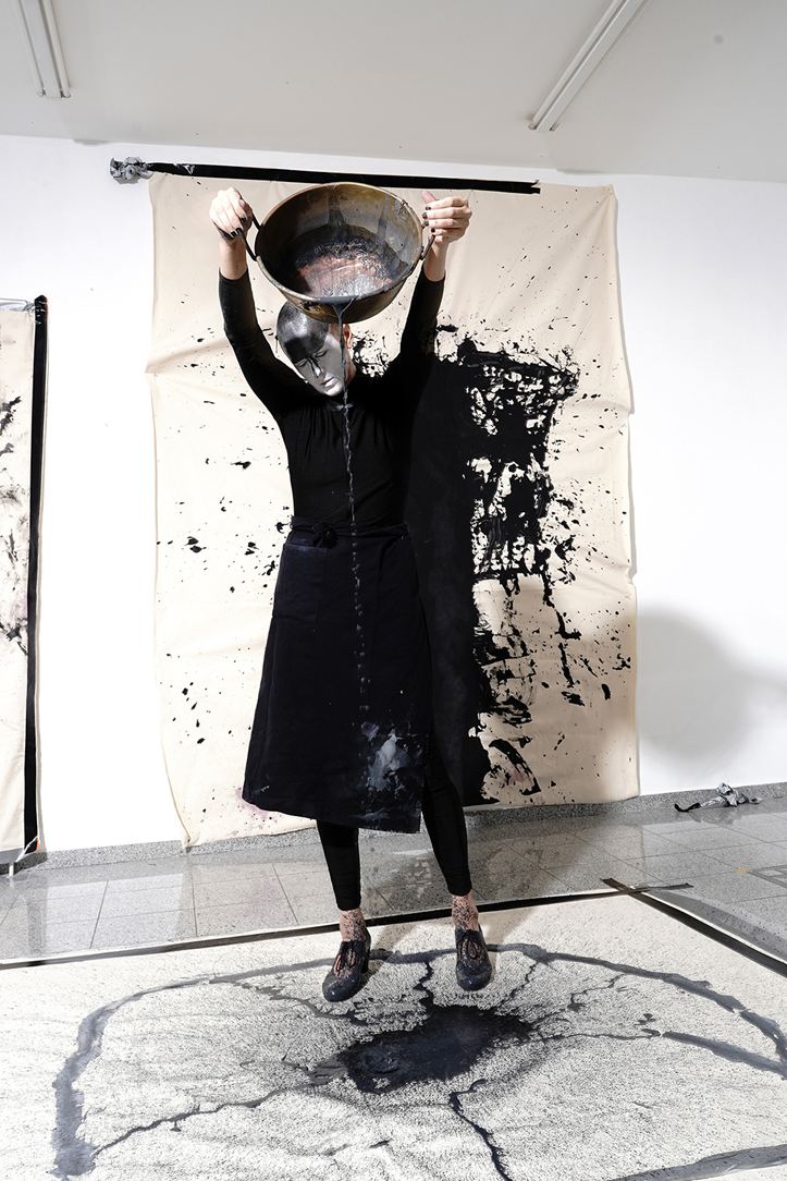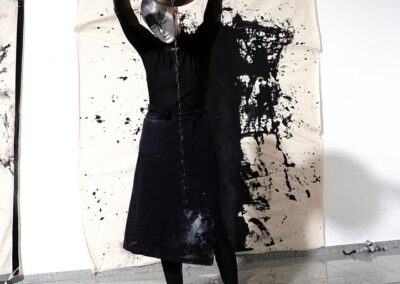 Z kolei w przestrzeni publicznej Kassel, jak i w pomieszczeniu Moving School współpracującej z naszym festiwalem, prezentowała akcję o antywojennej wymowie. Grała patetycznie, przybierała wzniosłe, czasem dramatyczne pozy. Przez cały czas trwania festiwalu chodziła w kostiumie. Była to zaplamiona czerwoną farbą, długa biała płócienna koszula. Głowę oplotła bandażem. Przekształciła w ten sposób swój performans w ciągłe wydarzenie artystyczne .