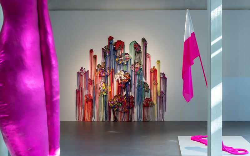 Osiemnaste Międzynarodowe Triennale Tkaniny to kolejna edycja przeglądu tkaniny, który pokazuje niesamowitą żywotność tego tradycyjnego, ale odkrywanego obecnie na nowo medium. O powrocie tkaniny na piedestał pisała już na łamach „Formatu”, Alicja Klimczak-Dobrzaniecka przy okazji poprzedniej edycji łódzkiego konkursu[1]. Wtedy – można powiedzieć – tkanina artystyczna ponownie odzyskiwała tożsamość, a światowe wydarzenia, takie jak Biennale w Wenecji (zarówno pięćdziesiąta dziewiąta, jak i sześćdziesiąta edycja) potwierdziły aktualność tej dyscypliny. Tegoroczne Triennale umacnia pozycję tkaniny jako techniki szczególnie nośnej, doskonale wpisującej się we współczesne dyskursy artystyczne. Mam tu na myśli przede wszystkim wciąż aktualne wątki postkolonialne, feministyczne czy queerowe. Tkanina, będąc techniką dość archaiczną (w pozytywnym tego słowa znaczeniu), jak się okazuje, może odnosić się do wspomnianych wątków w sposób oryginalny, a jednocześnie charakterystyczny dla specyfiki medium. Operowanie metaforą i symbolem, gra między wątkami globalnymi a lokalnymi, haptyczność, performatywność – to tak naprawdę tylko kilka haseł, które składają się na bogaty obraz osiemnastej edycji Międzynarodowego Triennale Tkaniny w Łodzi. Na trzech piętrach „Białej Fabryki” (Centralne Muzeum Włókiennictwa w Łodzi) mamy bowiem pełny przegląd postaw i form, którym warto przyjrzeć się rzetelniej.