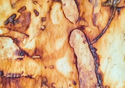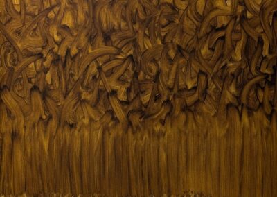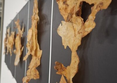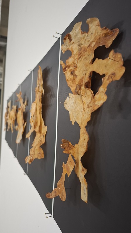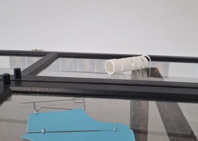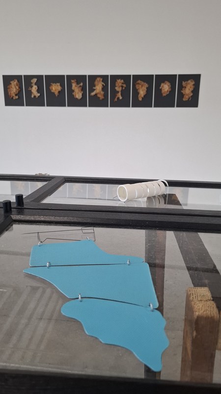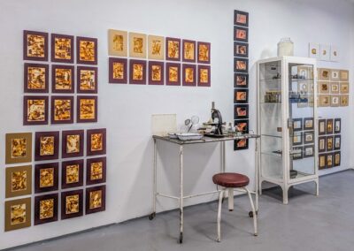Kilkudziesięciokilogramowy zbiór – kamieni, cegieł, metali, kruszcu budowlanego, gumy, plastiku i innych tworzyw sztucznych, szkła i butelek, sznurów, tkanin i drewna – po ekspozycji trafił do pracowni, a artysta poświęcił się badaniom i eksperymentom nad jego potencjałem jako tworzywa sztuki. W ten sposób powstały serie prac, w sensie materialnym i mentalnym zapoczątkowane w rzece. Szczególne miejsce i wiele uwagi autor poświęcił rdzy, którą odzyskał i obrabiał w różnych formach skupienia (brył minerału, proszku czy drobnego miału). Na jej bazie wytworzył „farbę”, którą malował obrazy o frapującej fakturze (i zapachu), tak zwane magnetoformy (małe obiekty obrastające magnetyczne jądro, przybierające za każdym razem inny kształt), zymografiki powstałe na skutek oddziaływania fermentowanej odrzańskiej wody na zardzewiałe kawałki metalu ułożone na kalce (zymosis – gr. fermentacja) oraz mikroskopię fotograficzną, gdzie drobiny w powiększonych kadrach balansują między abstrakcją a wizją łudząco przypominającą krajobraz czerwonej planety. Tak różnorodny zbiór stał się kanwą kolejnej wystawy Cabinet of Sub-Natural Curiosities, która odbyła się w galerii U Kosałki wiosną 2025 roku. Pokaz zawierał trzy główne części. Pierwsza to zbiór starannie wyselekcjonowanych odpadów z poprzedniej wystawy, w stanie wstępnego przetworzenia (oczyszczonych, ułożonych według klucza materiałowego, pogrupowanych, pociętych na części). Druga część stanowiła centralnym punkt ekspozycji. Był to zaaranżowany minigabinet – miejsce alchemicznego i twórczego eksperymentu, gdzie z odpadów powstały proszki, barwniki, bazy odczynników, rozdrobnione cegły, rdza i pozostałe materiały, w których twórca dostrzegł artystyczny i wytwórczy potencjał. Widzowie mogli zobaczyć i dotknąć surowców, z których powstały zaprezentowane w galerii dzieła, składające się na trzecią, właściwą część założenia. Rdzawy tryptyk o organicznej estetyce, kilkadziesiąt zymografik, nasuwających skojarzenia z motywami industrialnymi lub biologicznymi, cykl instalacji – próbek, amforek, słoiczków skrywających naoczne ślady (a raczej odpady) ingerencji człowieka w naturę, pogłębiały nie tylko pole eksperymentu, ale i świadomości naszych zaniedbań jako mieszkańców miasta, budując rozpaczliwy obraz zdegradowanego nadbrzeża. Niechlubne dowody nadprodukcji i zaśmiecania stały się tu skrzętnie zachowywanymi, estetyzowanymi okazami, którym woda Odry niczym formalina dodawała optycznej i symbolicznej niezwykłości. Ekspozycję uzupełniały okazy biżuterii artystycznej, będącej główną domeną Dariusza Wojdygi, stworzoną z wydobytych w Oslo kawałków metalu, tkanin czy plastiku. Niczym milczące martwe trofea konfrontowały „śmieciową” rzeczywistość z nurtu i nadbrzeża rzek Oslo i Wrocławia. Ostateczny akcent, swoistą „pieśń wyjścia”, formowały prace wideo, bazujące na cyfrowych i filmowych transformacjach obrazu wody, brzegu, fauny i flory Nadodrza.
