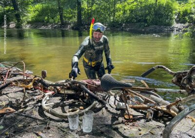 Kilka miesięcy później temat niechcianych w mieście surowców, które stały się materią sztuki, powrócił w kolejnej odsłonie, finalnej wystawie, pomyślanej jako zwieńczenie pracy z tworzywem, które dała rzeka. Projekt Od rzeki. Do rzeczy, był kolejnym polem, na którym kreatywność artysty wyszła naprzeciw potencjałowi surowca, i to nie tylko w dosłownym, ale także metaforycznym znaczeniu. Dariusz Wojdyga postanowił wzmocnić wyjściowy przekaz o możliwościach artystycznego wykorzystania pozyskanych materiałów uznanych potocznie za niepotrzebne, nieprzetwarzalne czy wstydliwe ślady ludzkiej nikczemności wobec miejsca, w którym żyją. W ostatniej odsłonie, która odbyła się w przestrzeni gościnnych dla sztuki wrocławskich Bulvarów, jesienią 2025 roku zaprezentował wystawę – rezultat współpracy z dwiema miejscowymi artystkami. Zaproszenie do wspólnej „materiałowej, technologicznej i artystycznej refleksji nad możliwościami surowców” przyjęły Lenka Kubica i Małgorzata Walesiewicz. Pierwsza z nich wprowadziła i wzmocniła motyw rzeźby, druga nadała temu, co znalezione i zużyte, wymiar bardzo praktyczny (upcyklingu modowego). Wystawie trójga twórców przyświecał ten sam cel – pokazać, że sztuka może być sposobem opowiadania o problemach miasta i ekologii, narzędziem edukacji i środkiem komunikowania ważnych treści. Przede wszystkim stanowiła mocny manifest oddający głos przedmiotom i Odrze, nieoczywistemu pięknu odpadów i kulturotwórczej roli rzeki, tak symbolicznej w społeczno-kulturowym życiu miasta. Jak mówili (do rzeczy) twórcy: „To artystyczny manifest, który ma zwrócić uwagę na rzekę, która nie potrafi mówić sama za siebie, a także podjąć próbę nietypowego przedstawienia potencjału »nowych surowców« – pozyskiwanych z natury, lecz w bezinwazyjny sposób (znajdowanych, zbieranych w akcjach sprzątania), w przeciwieństwie do obciążających naturę eksploatacyjnych metod czerpania. Jest to więc działanie »ku naturze, ku rzece«, a nie »wbrew naturze«, postulujące kolektywizm nie tylko artystek i artystów, ale też społeczności sąsiedzkiej, jak i międzygatunkowy – ludzi i rzeki”.