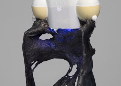 W tym sensie praktykę Mateusza Pęka można odczytywać w kontekście koncepcji Dark Ecology Timothy’ego Mortona – ekologii pozbawionej nostalgii za „czystą naturą” i oporu wobec łatwych podziałów na to, co naturalne i sztuczne. Obiekty artysty nie proponują powrotu do utraconej harmonii, lecz konfrontują widza z lepką, niepokojącą współobecnością ludzi, technologii i odpadów. Plastikowe „organizmy” Pęka funkcjonują niczym mroczne hiperobiekty: są jednocześnie intymne i obce, fascynujące i odpychające, wpisane w skalę przekraczającą ludzką percepcję czasu. Ekologia, która wyłania się z tej praktyki, nie ma charakteru naprawczego – jest raczej ćwiczeniem w akceptacji splątania, w którym to, co syntetyczne, staje się nieusuwalnym komponentem współczesnego ekosystemu.