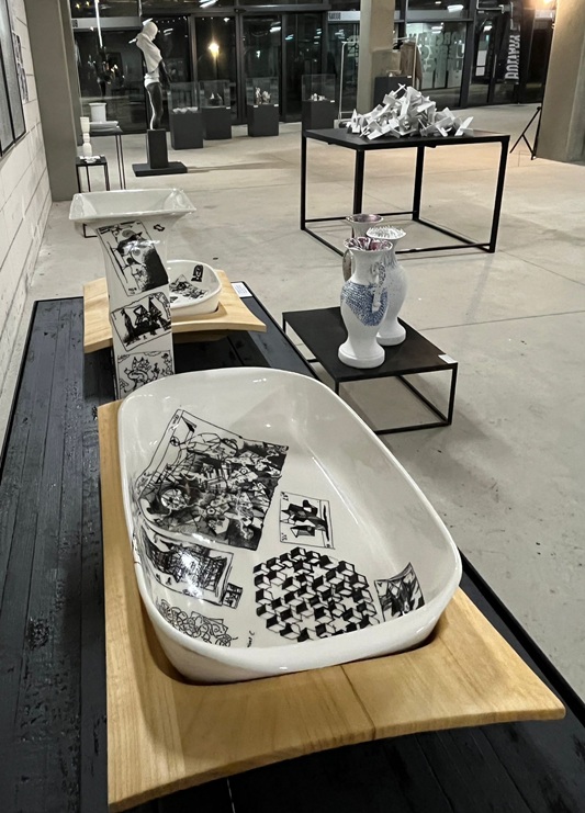 Wystawa Porcelana jeszcze inaczej daje świadectwo kreatywności i talentów artystów ceramików, ale też przyjaźni, współpracy i czasu wspólnej zabawy. Podczas międzynarodowych sympozjów Porcelana Inaczej zbierało się grono twórców z całego świata by pracować i eksperymentować z porcelaną. Pracowali w nieistniejących już fabrykach Dolnego Śląska: Książ, Wałbrzych, Krzysztof, Karolina. Było to łatwe, bo porcelana płynęła rurami, można ją było czerpać garściami z przemysłowych wózków. Wsparcie załóg fabryk, wypały w stanie ciągłym, przestrzenie do pracy, były receptą na swobodną wypowiedź artystyczną, próby, nowe projekty, realizacje bez ograniczeń. Nie tylko fabryki były fenomenem plenerów, ich istotą byli artyści – wymiana doświadczeń osobowości artystycznych z różnych zakątków świata, wieczorne spotkania przy pokazach slajdów i poznawaniu dorobku każdego z artystów, wspólna praca, nowe znajomości i przyjaźnie, możliwość podglądania „patentów” i technik.