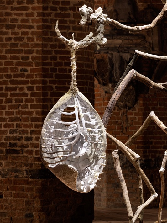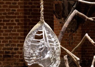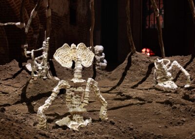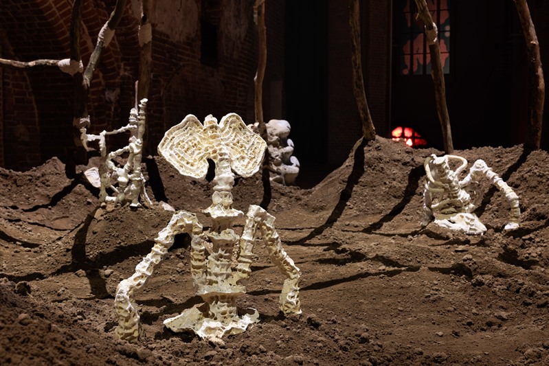 Pomimo bardzo wnikliwych naukowych analiz nigdy nie będziemy w stanie osiągnąć stuprocentowej pewności co do rzeczywistego przebiegu tych zdarzeń. Dialog z takimi archeologicznymi powidokami napędza moją wyobraźnię. Motyw kości jako budulca i tworzywa pierwotnej architektury fascynuje mnie od dłuższego czasu; szczególnie cieszy mnie fakt, że mógł on wybrzmieć w kontekście przestrzeni „upadłego”, zdesakralizowanego kościoła – jako symboliczny triumf pierwotnej, preinstytucjonalnej rytualności nad systemową strukturą chrześcijaństwa.